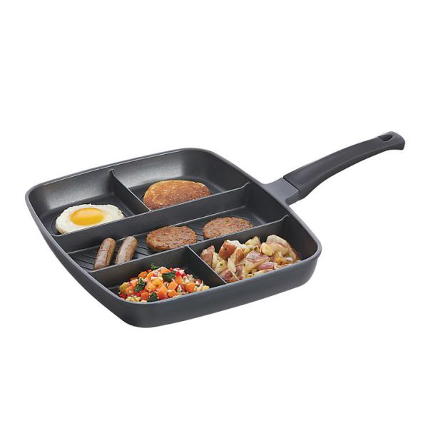 ماهیتابه مستر پن، یک تابه چندبخشی است که امکان پخت همزمان چندین نوع غذا را بدون مخلوط شدن طعم و بو آنها فراهم میکند. تصور کنید در حالی که ماهی یا مرغ را سرخ میکنید، بهطور همزمان تخممرغ، سبزیجات یا حتی برنج را هم آماده میکنید. دیگر نیازی به استفاده از چند قابلمه و ماهیتابه مختلف نیست.